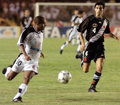 A Fiel comparece em peso ao MaracanãO Vasco começou melhor e quase abriu o placar no primeiro minuto. Em cobrança de escanteio, Rincón cabeceou para trás e a bola passou pertinho de Romário, que estava encostado na trave esquerda de Dida. Aos 4 minutos foi a vez do Corinthians assustar pela primeira vez. Ricardinho lançou Luizão, que dominou, avançou e chutou cruzado, com perigo.