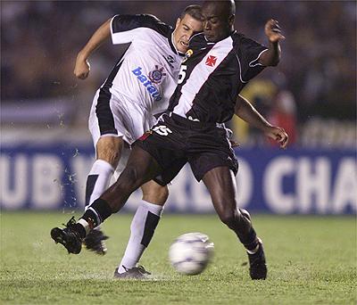 Edílson vai pra cima da zaga vascaínaUm minuto mais tarde, o Vasco quase fez um golaço com Gilberto. O lateral-esquerdo vascaíno recebeu cruzamento, e de dentro da área pegou um voleio de primeira. A bola passou perto da trave de Dida, que só fez golpe de vista.